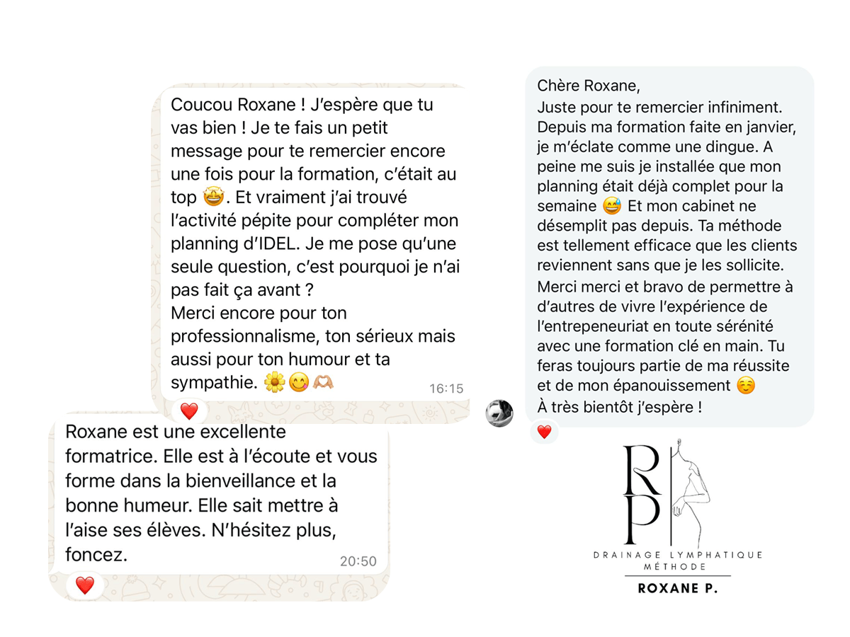 En suivant notre formation, vous obtiendrez les compétences nécessaires pour exercer le drainage lymphatique de manière professionnelle. Profitez de l'expertise de Roxane et de son approche unique pour devenir un spécialiste du drainage.